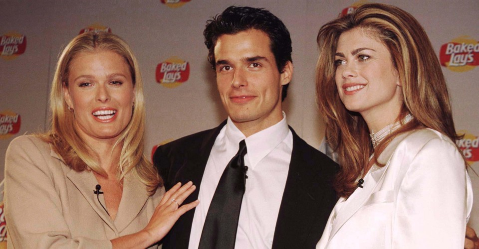 In this photo from 1997, people identified as "Supermodels Vendela (L), Antonio Sabato, and Kathy Ireland" at a Superbowl promo. Reuters