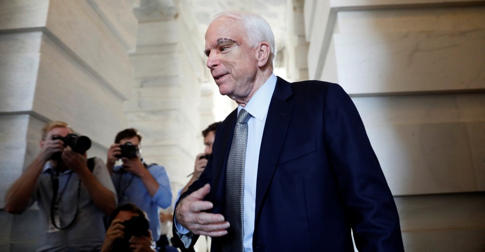 Offered as part of the ongoing record of our times. Let’s hope (as opposed to expect) that McCain will surprise us in the final stages of the Obamacare-repeal debate, and use the independence of this stage of his career to vote the way he himself has long recommended.