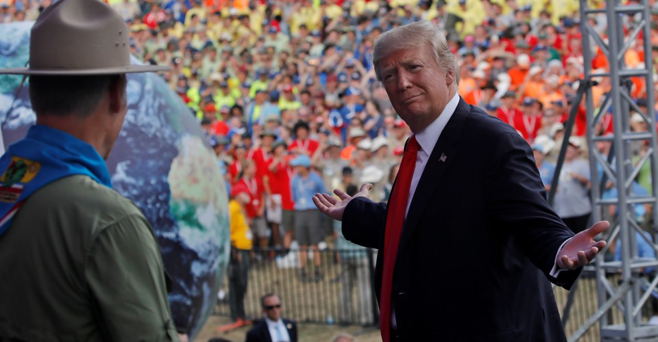 The Boy Scout Jamboree is a huge event that happens only once every four years. Whoever is president is always invited to speak. After Donald Trump converted this year’s Jamboree into a backdrop for a wholly inappropriate partisan rally (as explained by Yoni Appelbaum), the head of Boy Scouts of America publicly apologized for what had happened and implicitly criticized Trump for what he had done: