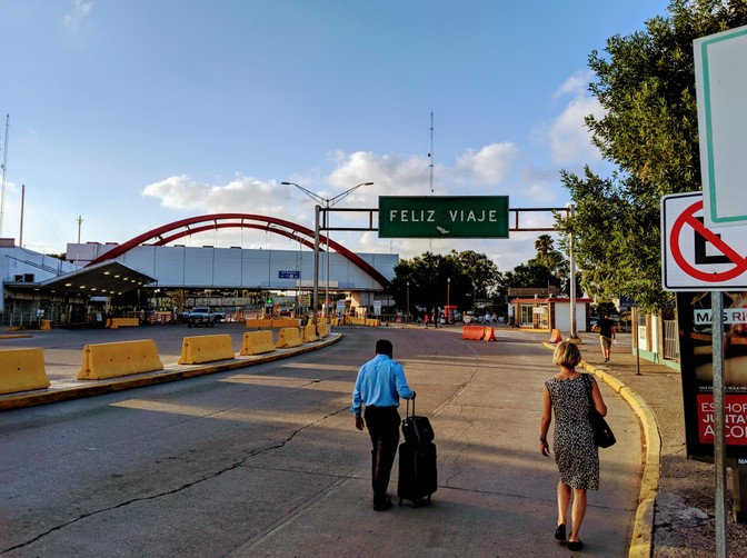 On our first evening in Brownsville, when the heat of the day had subsided a little, Jim and I decided to walk across the International Bridge into Matamoros. How could we not? We had no chance of entering the detention centers that have become so notorious in the Rio Grande Valley and elsewhere along the border. We wanted to have at least a look at the routine daily flow north and south.