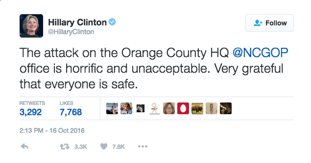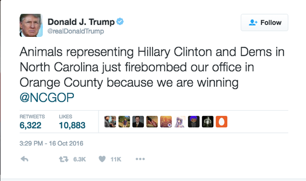 Almost immediately on hearing news that a GOP office in North Carolina had been firebombed, Trump put out the tweet you see above. Meanwhile the Charlotte Observer, a real newspaper close to the scene with actual reporters, quoted police this way: