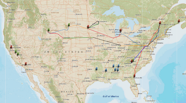 The C-SPAN broadcast probably does not include a sequence of en-route snapshots we've taken through the months on the road (and in the air). These were run as B-roll before the program began, and they're available in un-annotated form as a G+ album. And that map at top is explained in this previous post.