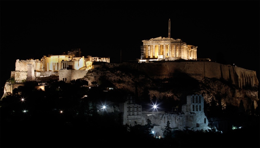 Read moreThe hill of the Acropolis and the Herodion theatre during Earth Hour in Athens, Greece, on March 26, 2011. [click image to view transition - javascript required] #