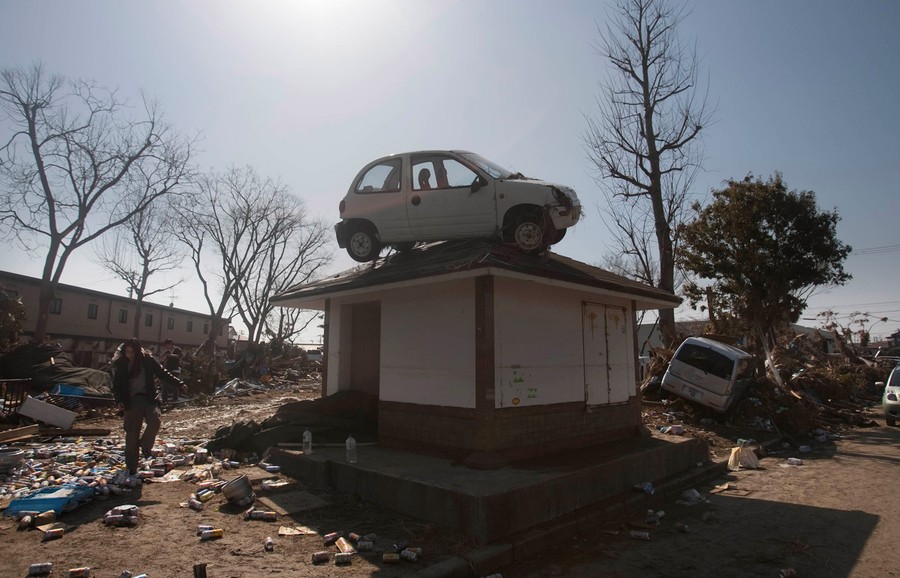 Read moreA car sits on top of a small building in a destroyed neighborhood in Sendai, Japan, on Sunday, March 13, 2011 after it was washed into the area by the tsunami that hit northeastern Japan. #