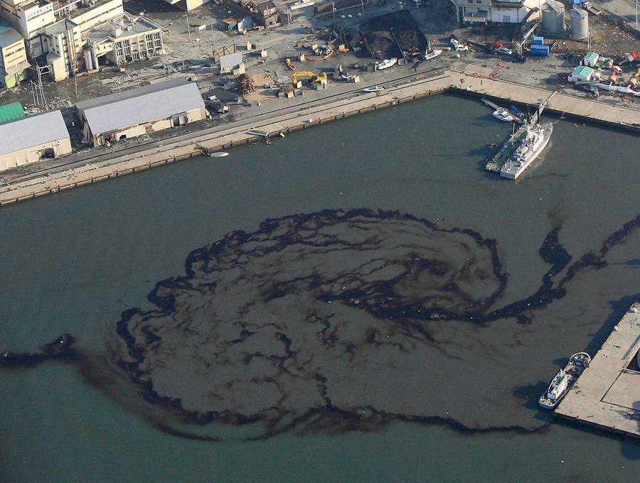 Read moreOil leaked from a Nippon Petroleum Refining Co. oil factory float at Shiogama bay, Miyagi prefecture, Japan, Saturday, March 12, 2011, a day after one of Japan's strongest earthquakes ever recorded hit the country's east coast. #