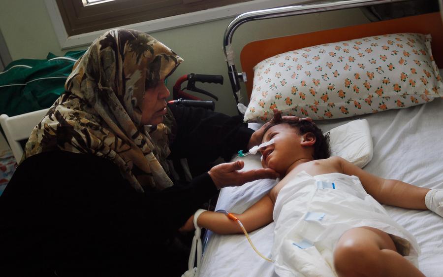 Read moreSelima Abdullah caresses her youngest granddaughter Heba, who suffered a ripped-open abdomen from shrapnel, after an explosive shell landing near her home during fighting in the besieged city of Misrata two days earlier on April 19, 2011 at a hosptial in Misrata, Libya. Several families were all staying in a house in Misrata, as it was shelled today and some people were injured and taken to hospital as a result. #