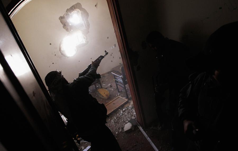 Read moreA Libyan rebel fighter fires into a basement during an effort to dislodge some ensconced government loyalist troops who were firing on them during house-to-house fighting on Tripoli Street in downtown Misrata April 20, 2011. #