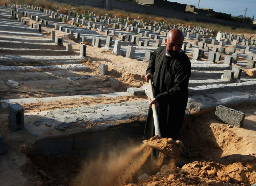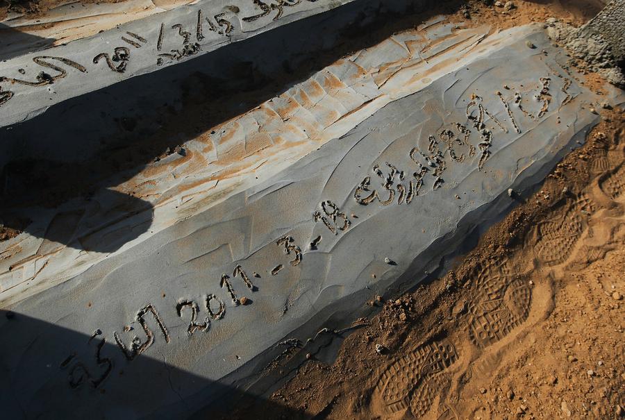 Read moreA gravedigger turns earth while digging a grave for a civilian victim of the Libyan conflict April 19, 2011 in Misrata, Libya. The simple graveyard in Misrata has hundreds of simple concrete graves; many dozens are those that have been killed during the last two months of fighting in the besieged town. #