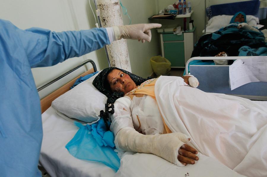 Read moreA doctor stands by a Libyan woman who suffered shattered bones and serious abdominal injuries from explosive shell landing on her home during fighting in the besieged city of Misrata, Libya two days earlier on April 19, 2011. #