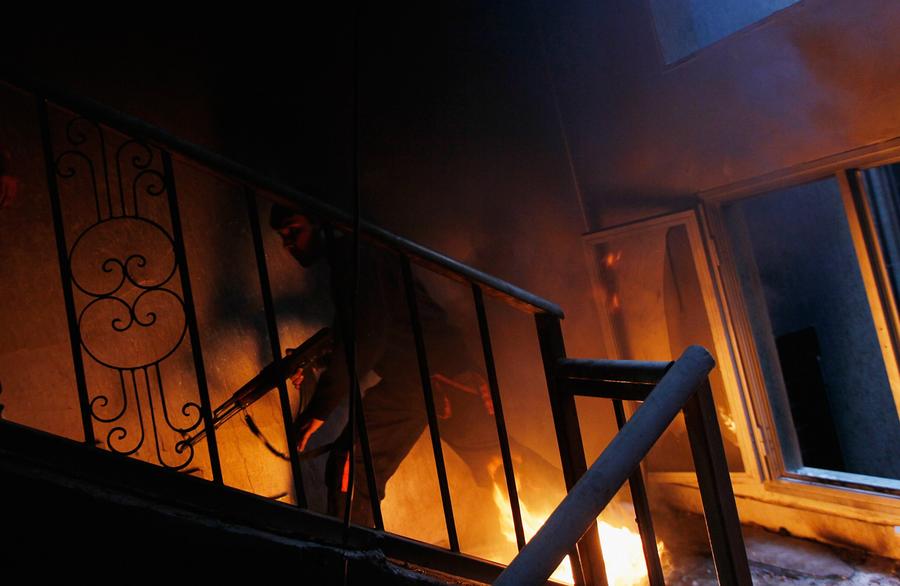 Read moreA libyan rebel fighter runs up a burning stairwell during an effort to dislodge some ensconced government loyalist troops who were firing on them from an upstairs room during house-to-house fighting on Tripoli Street in downtown Misrata April 20, 2011. #