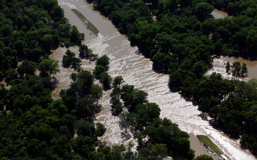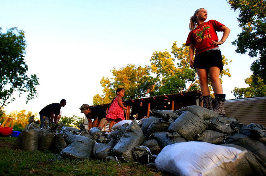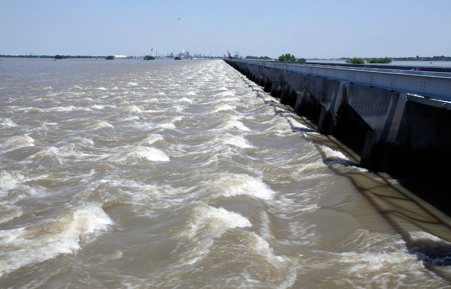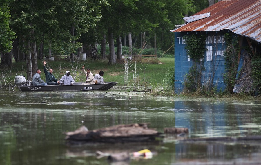 Very slowly, the high waters of the swollen Mississippi River are making their way south to Louisiana. Weeks of heavy rains and runoff from an unusually snowy winter have flooded thousands of homes and over 3 million acres of farmland in Mississippi, Tennessee, and Arkansas. The river is expected to crest at a record height of 58.5 feet sometime today in Vicksburg, Mississippi, 200 miles north of New Orleans. In order to spare larger cities and industrial areas downstream, the U.S, Army Corps of Engineers has opened floodgates in the Morganza Spillway, north of Baton Rouge, Louisiana, allowing an estimated 100,000 cubic feet of river water to flow into the Atchafalaya Basin every second. Collected here are images of the Mississippi and those caught in its path over the past few days -- coping, watching and waiting. [ See also: What We've Done to the Mississippi River: An Explainer by Alexis Madrigal. ]