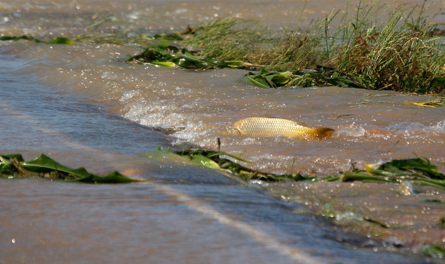 Read moreA carp tries to swim from the backwater that has flooded the corn fields across River Road north of Yazoo City, Mississippi, on Thursday, May 12, 2011. Fish displaced by the flooding of the Mississippi River and forced into the backwaters of the tributaries are trying to return the their natural environment. #