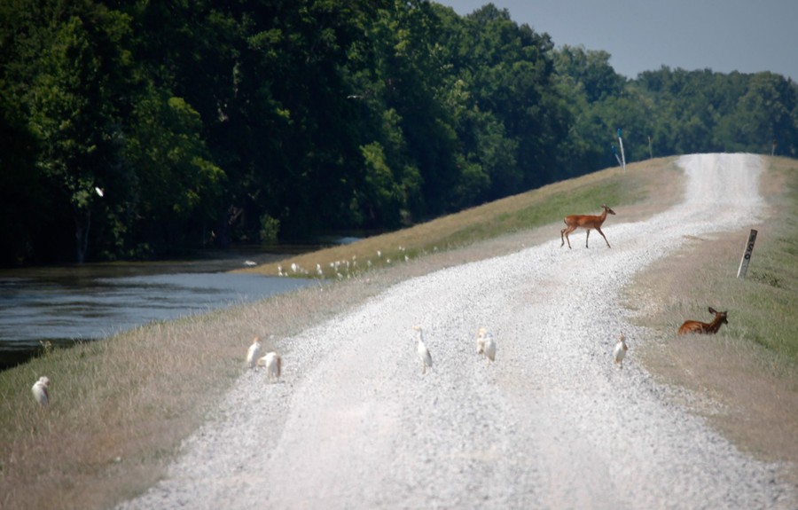 Read moreA deer makes its way from the flooding Atchafalaya Basin in Lottie, Louisiana, on May 18, 2011. Floodwater released from a key Mississippi River spillway surged through Cajun Louisiana, but levees protecting the state's two biggest cities held as river flows neared their peak. #