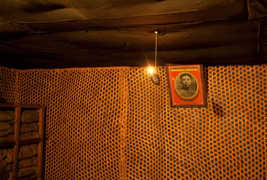 Read moreA photograph of Kim Il Sung hangs on a wall next to a light made from a grenade inside an exhibit, made to look like underground bunkers used during the resistance against the Japanese occupation, at the war museum in Pyongyang, North Korea, on March 9, 2011. #