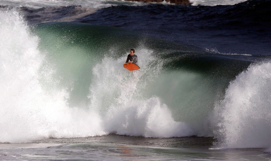 We humans are drawn to the shoreline, to live and to play. Some of us have even found a home in the waves, riding on gentle swells or braving roaring mountains of seawater. Surfing has been a part of human lives for centuries and is enjoyed around the world today. The stormy summer we've had this year provided some spectacular (if dangerous) conditions for surfers, many of them captured in photos below. Gathered here are images from the past several months of people (and animals) in the surf, including professional surfers, amateurs, spectators, and more.