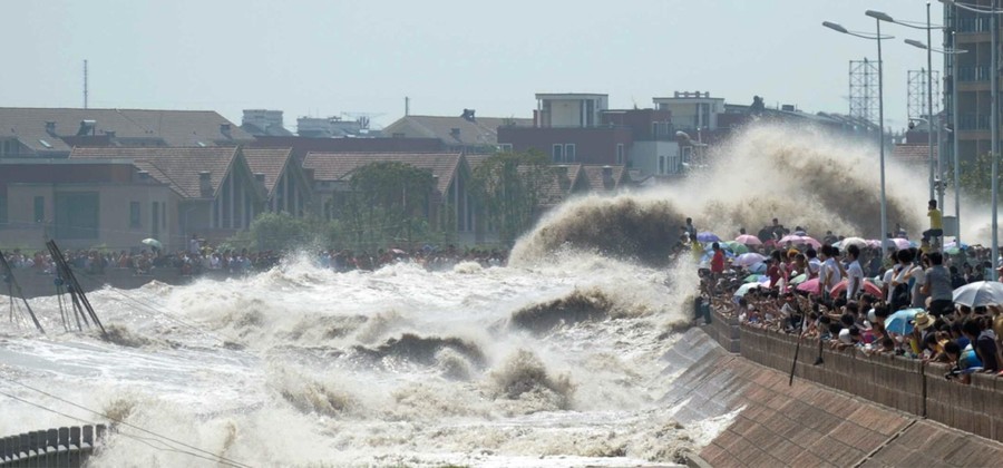 Read morePolicemen and residents run as waves from a tidal bore surge past a barrier on the banks of Qiantang River in Haining, China, on August 31, 2011. As Typhoon Nanmadol approaches eastern China, the tides and waves in Qiantang River recorded its highest level in 10 years, local media reported. #