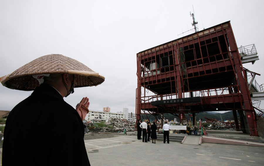 Read moreA Buddhist monk pays respect to the victims of March 11, 2011 earthquake and tsunami in front of the ruined disaster control center of Minamisanriku town, Miyagi Prefecture, northeastern Japan, on September 11, 2011. The facility destroyed by the tsunami became a place to remember the disaster after its 20 staff members, including a young woman who had been urging residents to flee from the tsunami through a public-address system until the last moment, were washed away and killed. #