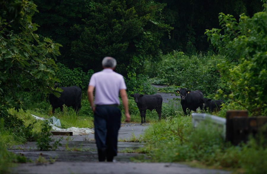 Read moreIn this photo taken Friday, August 19, 2011, Naoto Matsumura calls on cows in Tomioka town, Fukushima, northeastern Japan. Later, Matsumura, who routinely drives around the town to feed wandering animals, said he forgot to bring food for them. Nearly six months after Japan's catastrophic earthquake and tsunami, the 53-year-old believes he is the only inhabitant left in this town sandwiched between the doomed Fukushima Dai-ichi nuclear power station to the north and another sprawling nuclear plant to the south. #