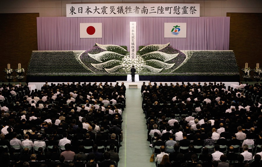 Read morePeople attend a memorial service for victims of the March 11 earthquake and tsunami in Minamisanriku town, Miyagi prefecture September 11, 2011. The banner reads: "Great East Japan Earthquake victims - Minamisanriku town Memorial Service." #