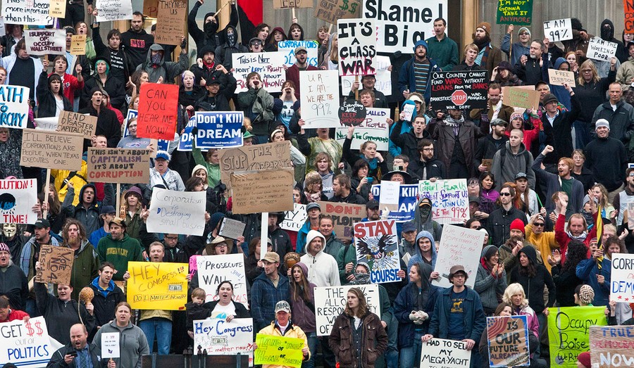 It's now been three weeks since the "Occupy Wall Street" protests began in New York City's Financial District, and the movement has grown, spreading to other cities in the U.S. Protesters have organized marches, rallies, and "occupations" from Boston to Boise, Los Angeles to New Orleans, Seattle to Tampa. Using social media, handmade signs, and their voices, they are voicing anger at financial and social inequality and protesting the influence of corporate money in politics. Seattle police recently arrested 25 protesters camping out in Westlake Park, following on the heels of 700 arrests on New York's Brooklyn Bridge last week. Collected here are a some of the scenes from these protests across the U.S. over the past week, as the movement moves forward with no signs of slowing.