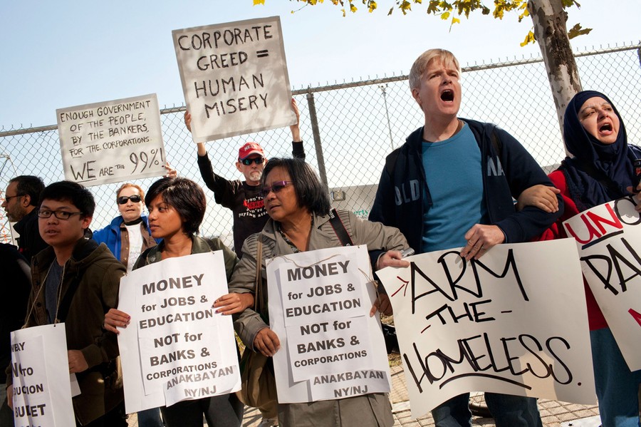 Read moreProtesters affiliated with "Occupy NJ" chant during a protest outside the Goldman Sachs building at 30 Hudson Street October 6, 2011 in Jersey City, New Jersey. The protesters marched approximately a quarter of a mile along the waterfront chanting and beating drums. #