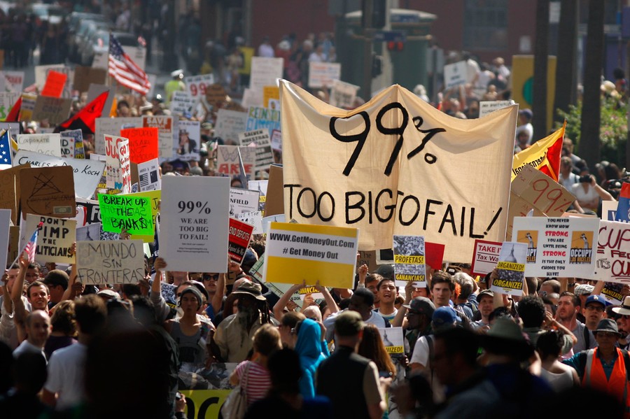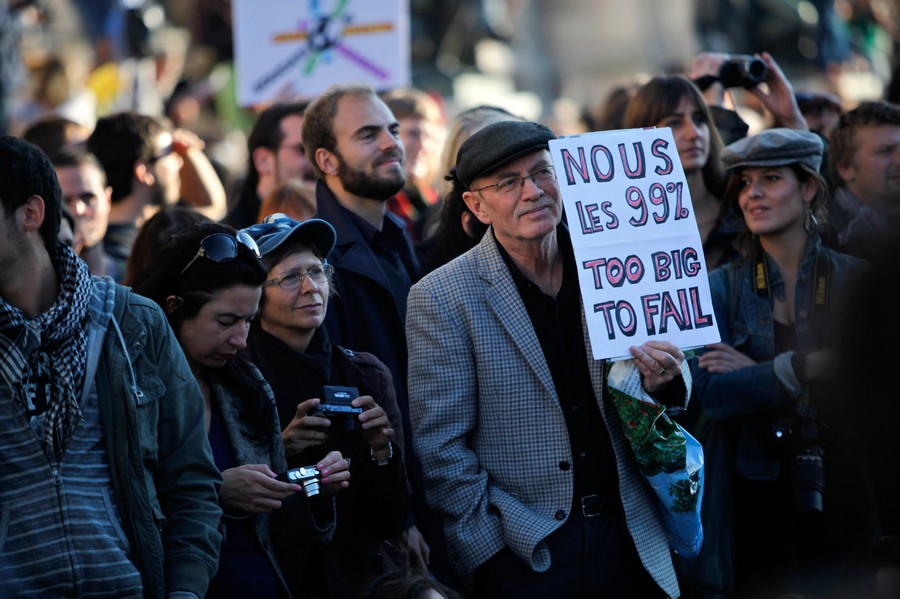 Read moreA protester holds a placard during an anti-capitalist demonstration, in Paris, France, on October 15, 2011. The placard reads: " We are the 99 per cent, too big to fail". #
