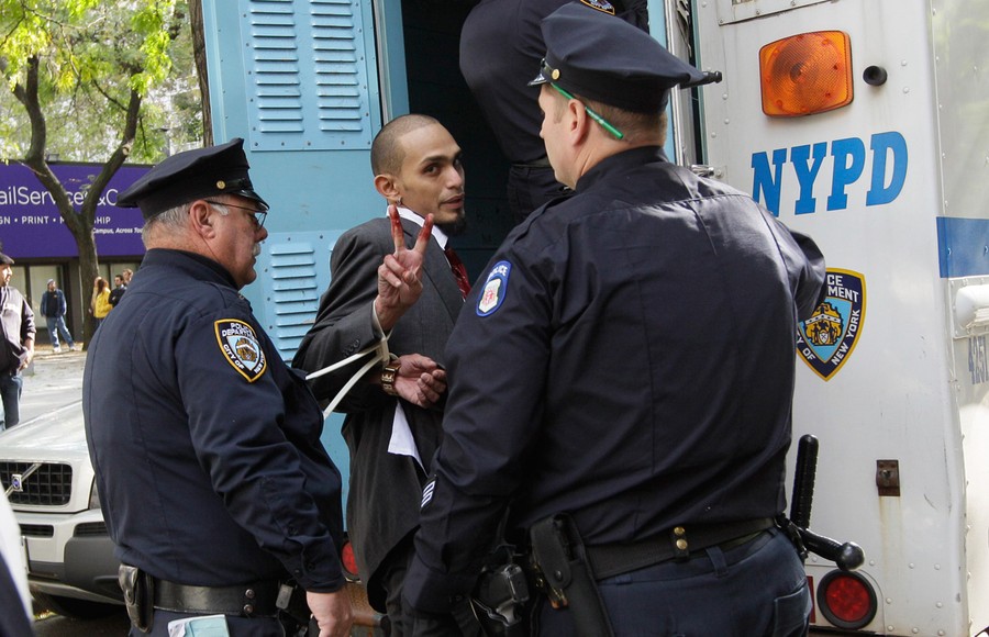 Read moreNew York City police officers arrest a man who was at a Citibank branch near Washington Square park where the Occupy Wall Street demonstrators are holding a rally, on October 15, 2011 in New York. #