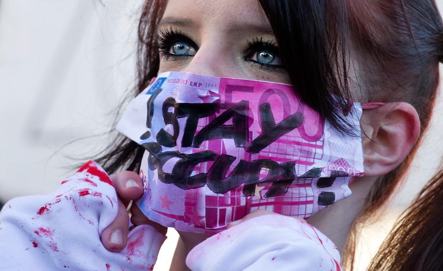 Read moreA participant protests with a mock 500 euro bill during a demonstration to support the "Occupy Wall Street" movement in Munich southern Germany, on October 15, 2011. Protestors gathered at many major European cities Saturday to join in demonstrations against corporate greed and inequality. #