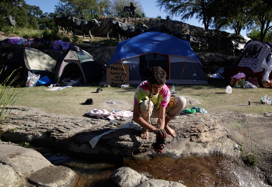 Read moreTymaeus Yunker works on making tie dye shirts at Pioneer Plaza in downtown Dallas, Texas, on October 13, 2011. Yunker, an Occupy Dallas activist, is part of the movement that came together following the Wall Street demonstrations. The local group which numbers in the 200 to 300 range has been based at the downtown park since last Thursday. #