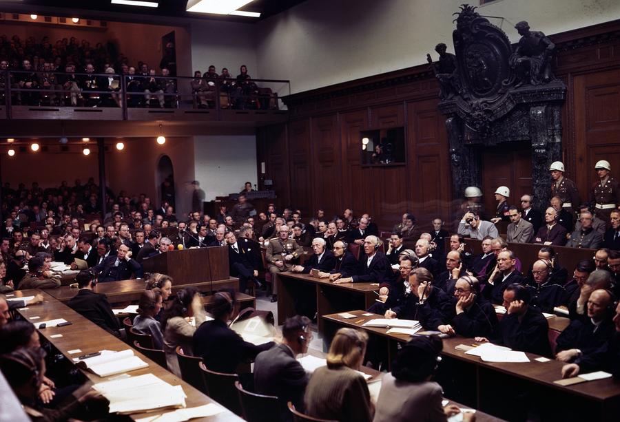 Read moreThe interior of the courtroom of the Nuremberg trials in 1946 during the Trial of the Major War Criminals, prosecuting 24 government and civilian leaders of Nazi Germany. Visible here is Hermann Göring, the former leader of the Luftwaffe, seated in the box at center right, wearing a gray jacket, headphones, and dark glasses. Next to him sits Rudolf Hess, the former Deputy Führer of Germany; then Joachim von Ribbentrop, the former Nazi Minister of Foreign Affairs; Wilhelm Keitel, the former leader of Germany’s Supreme Command (blurry face); and Ernst Kaltenbrunner, the highest ranking surviving SS-leader. Göring, von Ribbentrop, Keitel, and Kaltenbrunner were sentenced to death by hanging along with 8 others—Göring died by suicide the night before the execution. Hess was sentenced to life imprisonment, which he served at Spandau Prison, Berlin, until he died in 1987. #