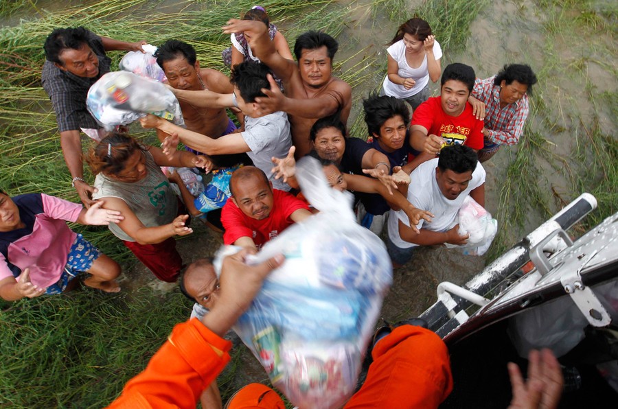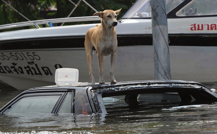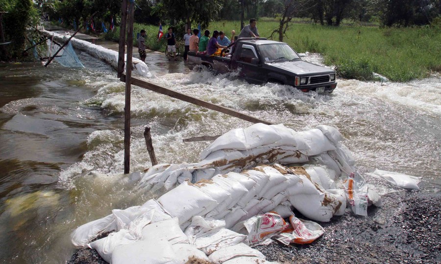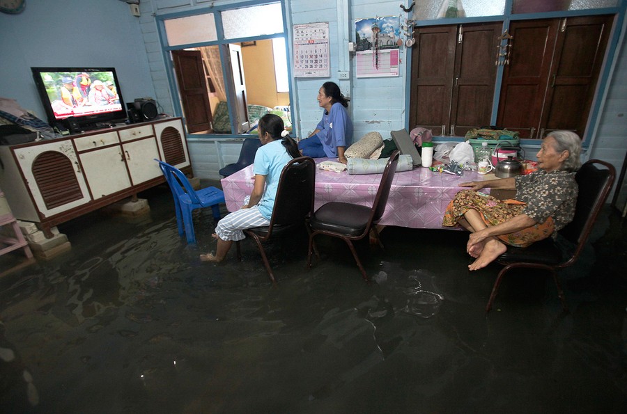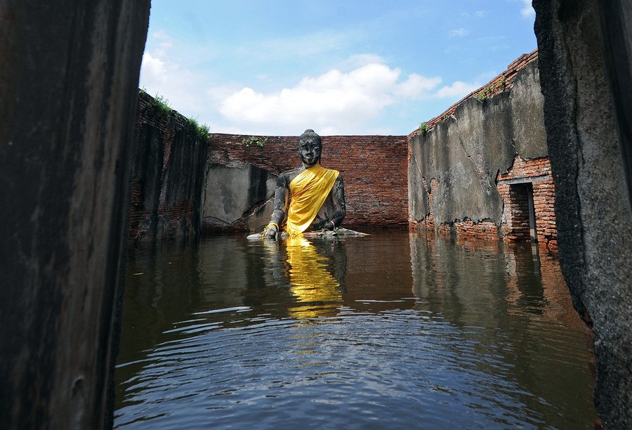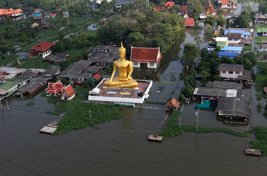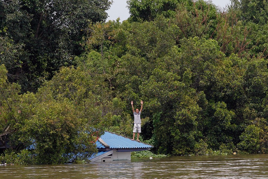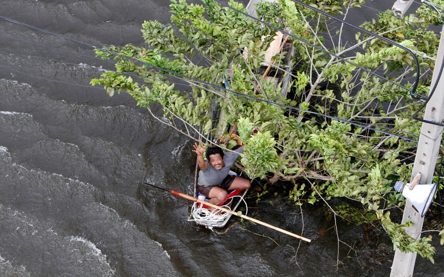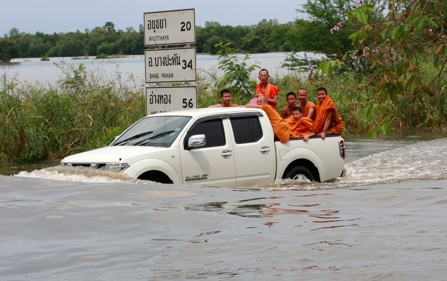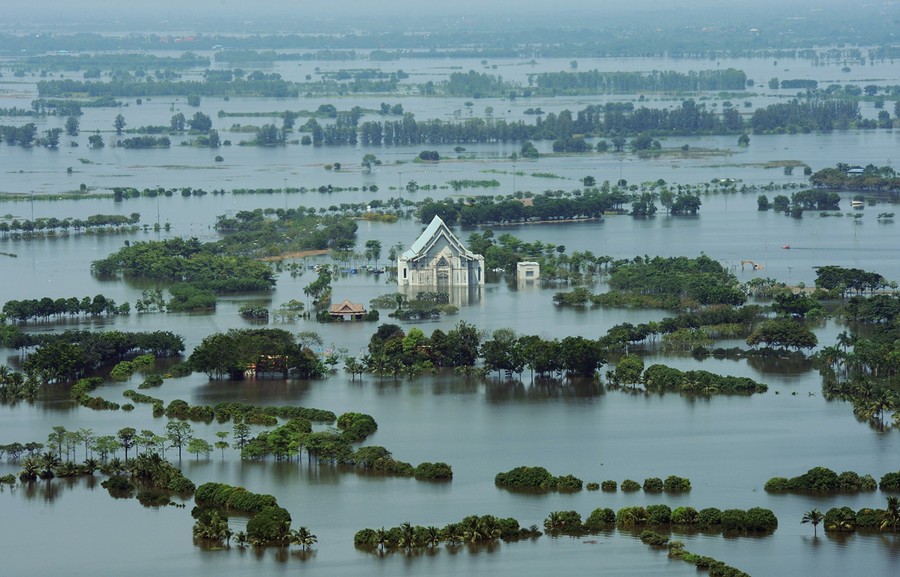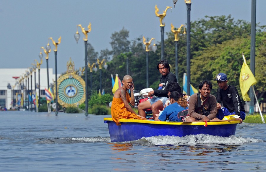Heavy monsoon rains have been drenching Southeast Asia since mid-July, causing mudslides and widespread flooding along the Mekong River. Parts of Thailand are now experiencing the worst floods in half a century, as water inundates villages, historic temples, farms, and factories. At least 281 people have been killed in Thailand, and another 200 in neighboring Cambodia. Rescue workers are scrambling to prevent a humanitarian disaster, and Thailand's prime minister is warning businesses not to use the flooding as an excuse to raise prices. About 8.2 million people in 60 of Thailand's 77 provinces have been affected by the flooding, and economic losses are so far estimated to top $2 billion. Collected here are recent images of the crisis in Thailand as some 10 million residents in Bangkok keep a wary eye on the approaching surge of floodwater, due to reach the capital in a few days.