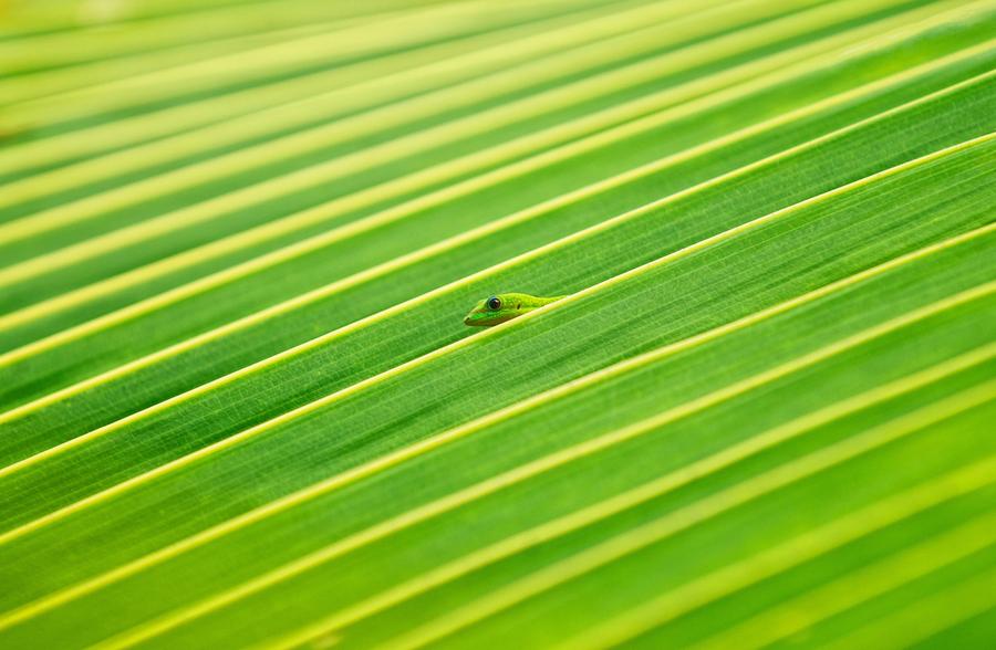 Read moreOne morning while on the Big Island of Hawaii, I was exploring my surroundings to see if I could find something to photograph. I almost went back inside when something on this huge palm tree leaf caught my eye. I stayed around and it was this little gecko, startled by my presence he was hidden between the ridges of the leaf. He would pop his head up periodically to check his surroundings; as soon as he saw I was still there he would hide again. We played this game for a while until I got the shot. #