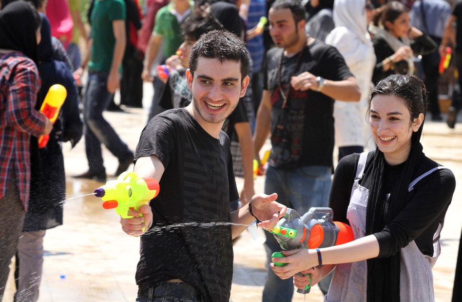 Read moreIranian youths shoot water at each other with water guns, during water fights at the Water and Fire Park in northern Tehran, on July 29, 2011. During the summer, Iran was trying to put down a new wave of civil disobedience - flash mobs of young people who broke into boisterous fights with water guns in public parks. Dozens of water fighters were arrested and a top judiciary official warned that "counter-revolutionaries" were behind them. #