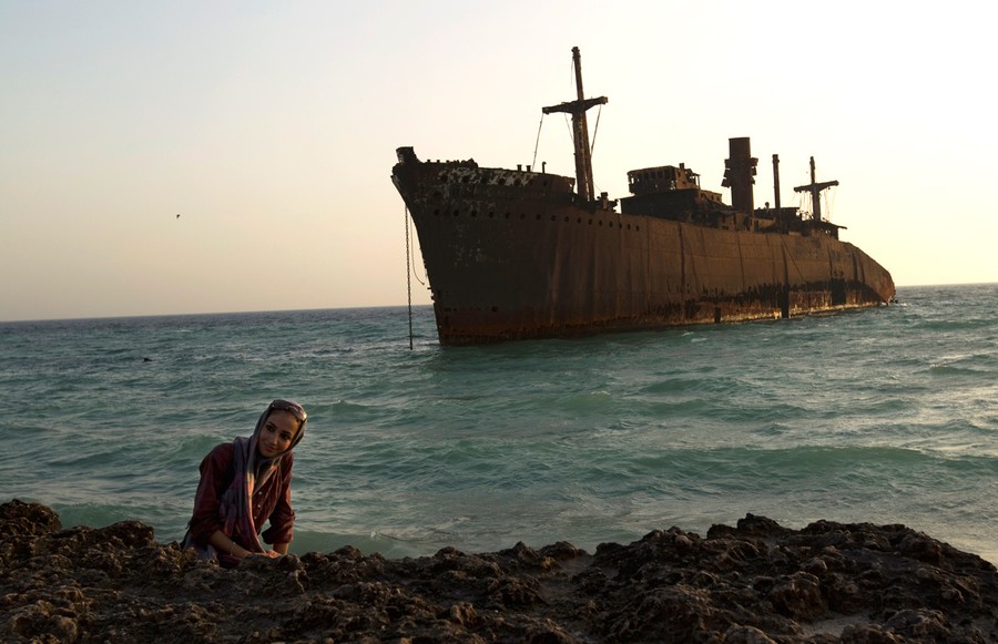 Read moreA woman poses for a picture in front of the beached Greek ship Moula F, during sunset off Kish Island, 1,250 km (777 miles) south of Tehran, on April 27, 2011. The ship ran aground on the southwest side of the island en route to Greece and was abandoned after salvage efforts proved unfeasible. #