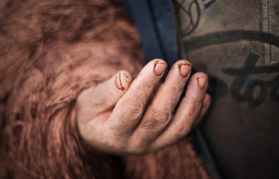 Read moreA weaver works on a carpet at a carpet workshop in Isfahan, Iran, on November 14, 2011. Persian carpets can be mostly divided into three size groups: large (3x4 meters), medium (2x3 meters) and small (1x1.5 meters), which is called Ghaliche. For a larger 24-square-meter silk carpet, every 70 cm (27.5 inches) section takes about a month to make. The price of each carpet is set by officials from Iran's national carpet company after examining each completed work. #