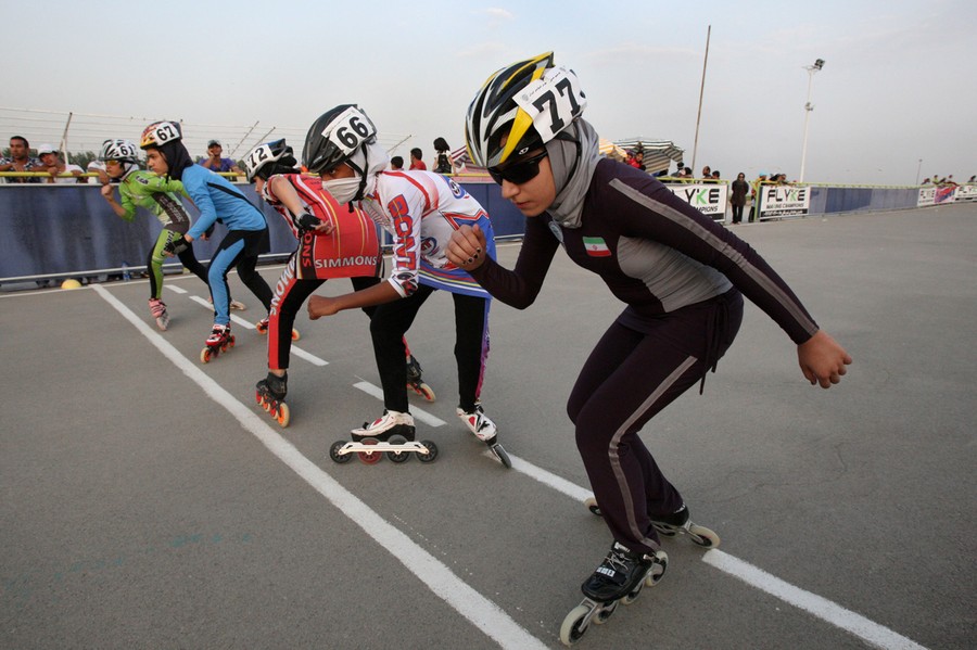 Read moreIranian rollerbladers wait to hear whistle of referee, to start their competition, in a women's rollerblading championship league, at the Azadi (Freedom) sport complex, in Tehran, on June 30, 2011. #