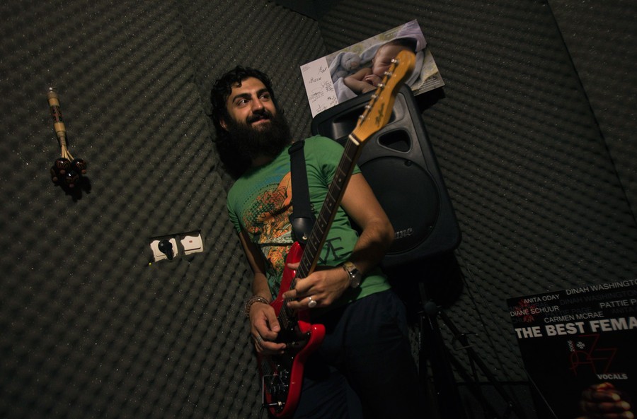 Read moreSevan Shahmirian, a member of the underground music band "Wednesday Call" prepares for a practice session at a home music studio in Tehran, on July 7, 2011. Many Iranian bands do not bother asking for the mandatory government permits to release their music and seek contracts with foreign companies or put their music on websites blocked by the state but still accessible to anyone with a modicum of technical skill. #