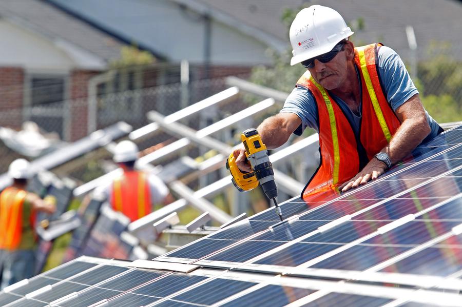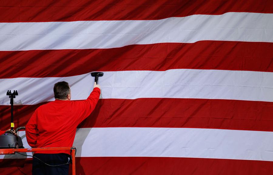 Read moreA workman steams a U.S. flag in preparation for a planned visit by President Barack Obama, on April 6, 2011, at wind turbine manufacture Gamesa Technology Corporation in Fairless Hills, Pennsylvania. #