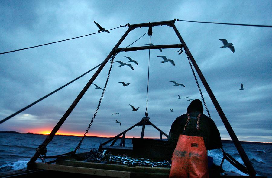 Read moreGulls seeking scraps follow a fishing boat where sternman Josh Gatto shucks scallops on the trip back to shore off Harpswell, Maine, on December 17, 2011. Scallop fishing in Maine can only take place between sunrise and sunset. #