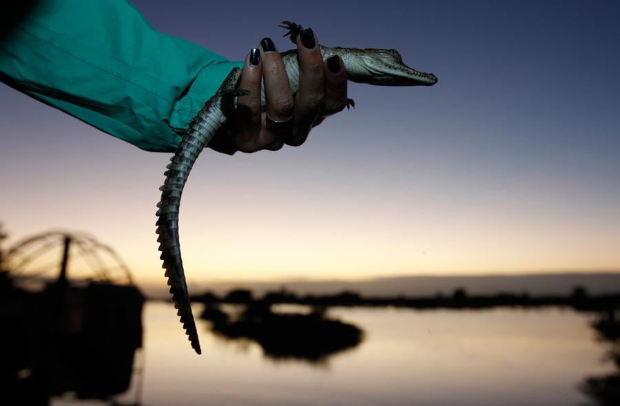 Read moreA wildlife biologist holds a small crocodile that will be released into one of the cooling canals adjacent to the Turkey Point Nuclear Power Plant during a nighttime crocodile survey in Homestead, Florida, on November 28, 2011. The crocodile monitoring program began in 1978, a year after employees stumbled upon a crocodile nest in the plant's cooling canal system. The initial goal was to ensure that the plant did no harm to the species but over the last three decades it has helped raise the number of crocodiles to more than 1,500 today. #