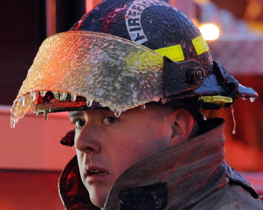 Read moreSchenectady firefighter/paramedic Adam Colvin's helmet is covered in ice after a neighboring house exploded when a gas main was severed by a construction worker in Schenectady, New York, on January 4, 2012. All occupants were accounted for, and 3 alarms were sounded to control the blaze. #