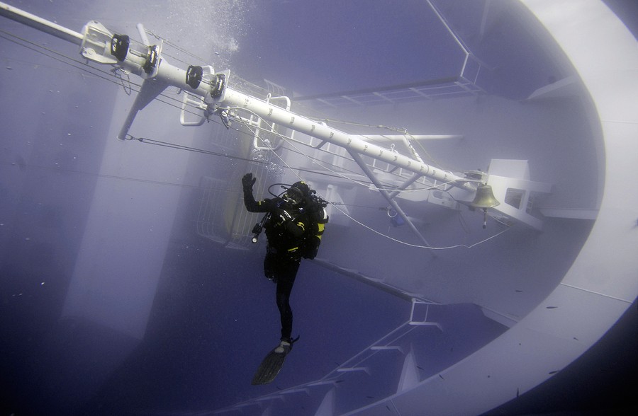 Read moreA Carabinieri scuba diver inspects the hull of the Costa Concordia cruise ship on January 19, 2012. Italian rescue workers suspended their search of the capsized Italian cruise liner Costa Concordia after the ship moved again on Friday, firefighters' spokeman Luca Cari said. #