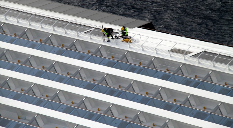 Read moreItalian technician Andra Faccioli aims a laser scanner to take measurements on the position of the cruise ship Costa Concordia as it leans on its side on January 19, 2012. The $450 million ship was carrying more than 4,200 passengers and crew when it slammed into a reef one week ago, after the captain made an unauthorized maneuver. #