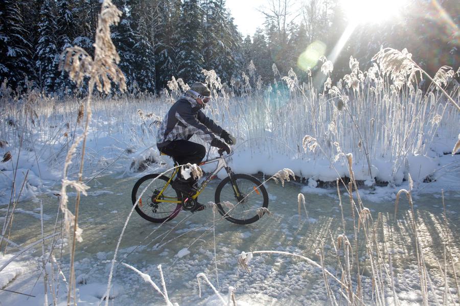 Read moreA cyclist rides his bicycle on a frozen river near Ragana, Latvia, on February 5, 2012. Many weather observation stations across Latvia registered new record-cold temperatures on Sunday according to the information from the Latvian Environment, Geology and Meteorology Center. #
