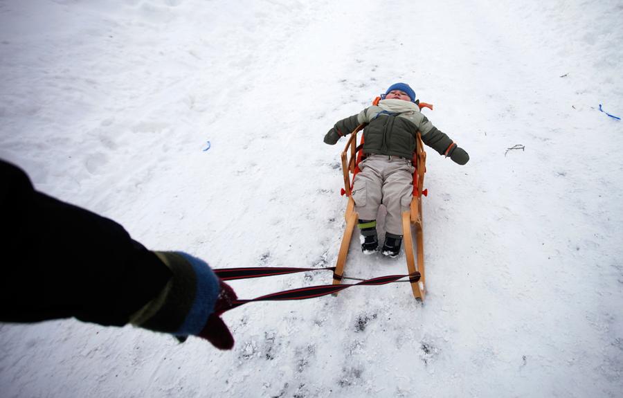 Read moreA father pulls his child on a sled in Sarajevo during a snowfall, on February 5, 2012. The Serbian government has so far declared a state of emergency in 19 municipalities in the south and east. #