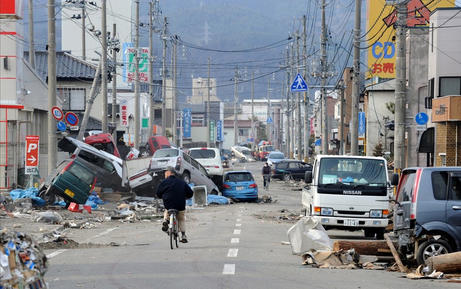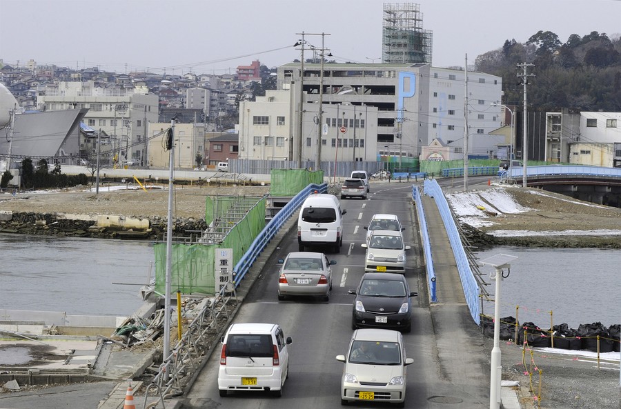 Read moreResidents cross a bridge covered with debris in a tsunami hit area of the city of Ishinomaki in Miyagi prefecture on March 15, 2011, the same area visible on January 13, 2012 (click to view). [click image to view transition - javascript required] #