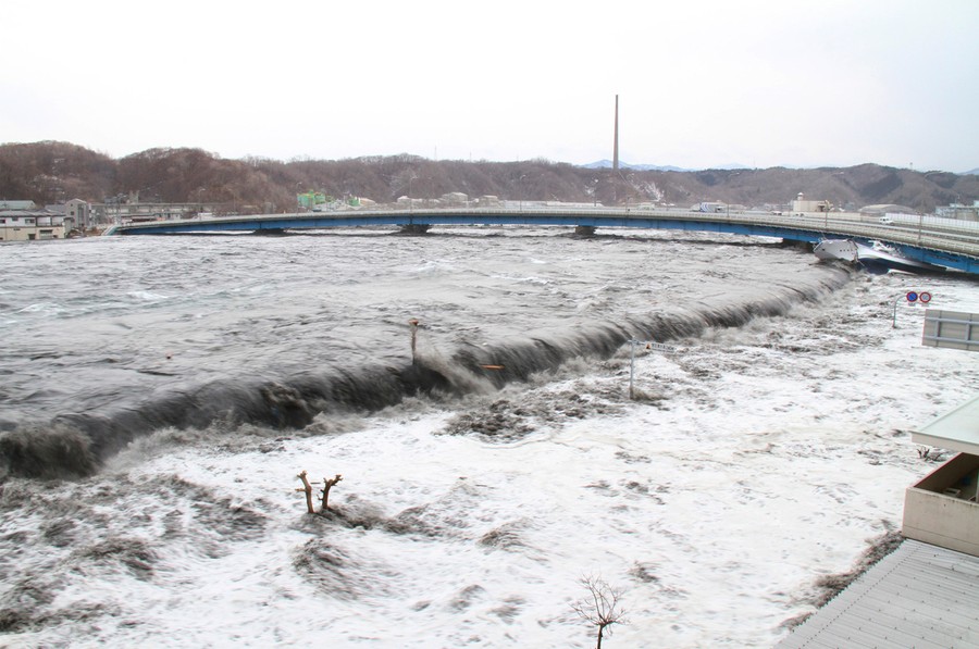 Read moreFlooding crests on a bridge in Miyako, Iwate Prefecture, on March 11, 2011, the same scene shown on February 17, 2012 (click to view). [click image to view transition - javascript required] #