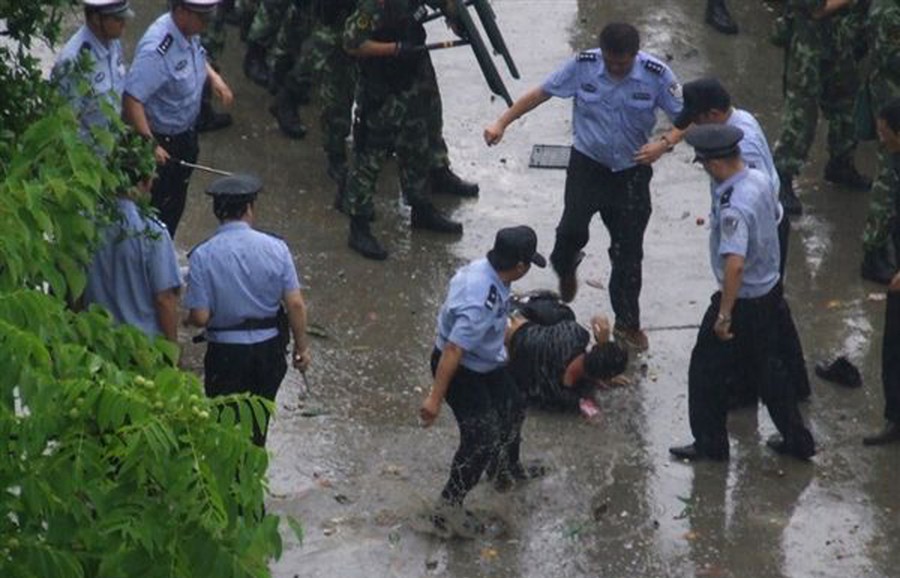 Read moreChinese police subdue a protester as over 1,500 people gather in front of government offices, throwing bottles and objects at police and breaking down the gate to the compound in Lichuan, central China's Hubei province, on June 9, 2011. Two officials were detained in central China after 1,500 protesters clashed with riot squads following the alleged death in police custody of a local legislator, state press said. #