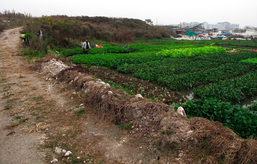 Read moreA farmer digs up celery in a small parcel of land, surrounded by heaps of construction earth and waste, in Wanggang village in China's southern Guangdong province, on January 19, 2012. The villagers recently staged a mass protest outside a city government office, angered at a local village Communist Party chief whom they accuse of illegally plundering their farmland, allowing it to be leased off for dumping and commercial purposes. #