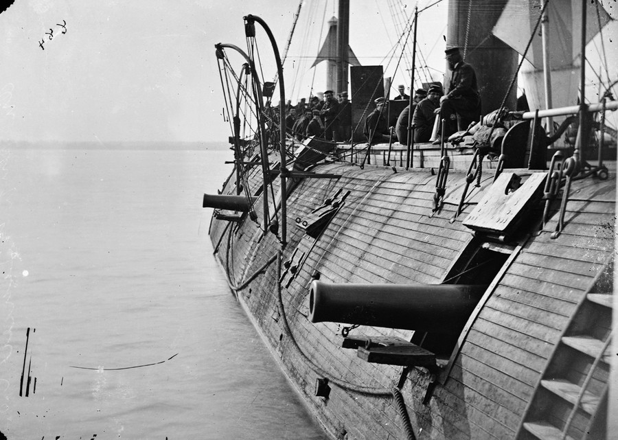 Read moreThe deck and turret of the ironclad U.S.S. Monitor on the James River, Virginia, on July 9, 1862. the Monitor was the first ironclad warship commissioned by the U.S. Navy, and famously fought the Confederate ironclad CSS Virginia (built from the remnants of the USS Merrimack) in the Battle of Hampton Roads -- the first meeting in combat of ironclad warships -- on March 8-9, 1862. #